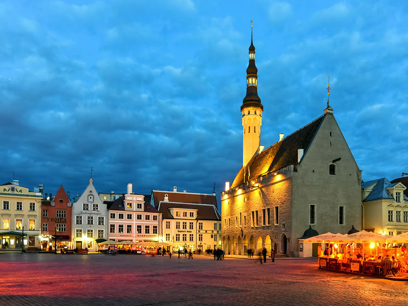La plaza del Ayuntamiento o "Raekoda Plats" con sus terrazas, restaurantes y quioscos, es uno de los lugares con más actividad de la parte baja de la ciudad. La plaza está cerrada en su lado meridional por el Ayuntamiento (Raekoda) que hoy es uno de los pocos edificios civiles es estilo gótico que se conserva en Europa del Norte.